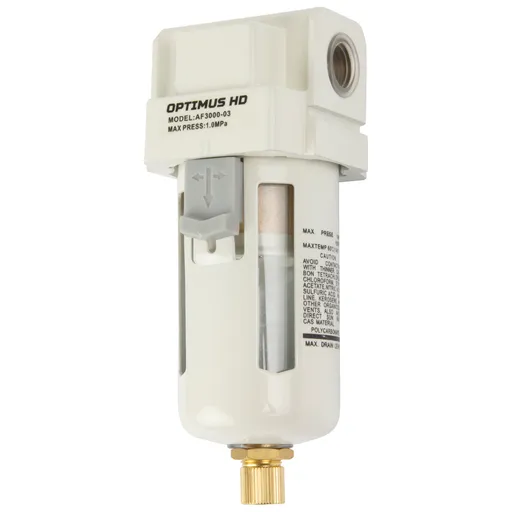 Фильтр-масловлагоотделитель OPTIMUS HEAVY DUTY AF3000-03 обеспечивает чистоту, сухость и правильную работу пневмоинструмента. Фильтр имеет высокую степень очистки, позволяющую удалять из воздуха различные загрязнения, масло и влагу. Это гарантирует, что воздух, который поступает в рабочую среду, будет чистым и безопасным для работы.
