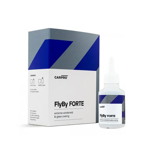Разработка Flyby Forte во многом основывалась на новейшей и самой передовой защите мобильных телефонов от царапин. Неорганическое нанотехнологическое покрытие было специально разработано для обеспечения максимальной прочности и долговременной устойчивости к истиранию и химическим веществам. Flyby FORTE прошел более 40 000 циклов очистки стеклоочистителей в режиме реального времени и доказал свою устойчивость к ультрафиолетовому излучению, высокую устойчивость к химическим веществам, а также устойчивость к царапинам и мелким сколам. Flyby FORTE — идеальное покрытие для ветрового стекла и стекол.