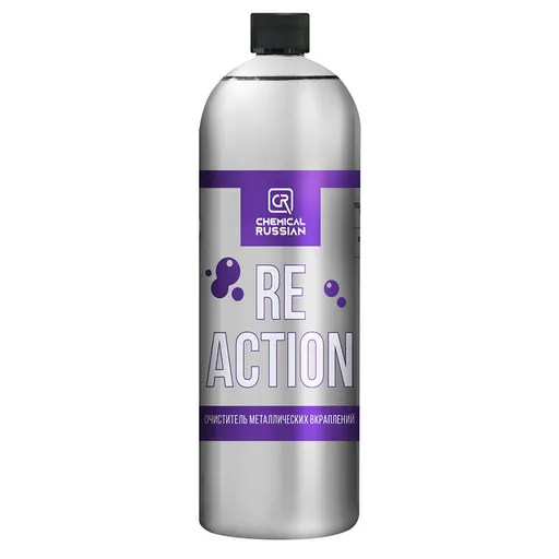 Chemical Russian ReAction — это профессиональное средство для удаления металлических вкраплений с колесных дисков и лакокрасочного покрытия (ЛКП). Благодаря рН-нейтральной формуле, очиститель эффективно и безопасно удаляет металлические загрязнения с таких поверхностей, как легкосплавные диски, хром, стекло и пластик. Особенность ReAction — визуальный индикатор: при контакте с загрязнениями состав окрашивается в фиолетовый цвет, что позволяет легко контролировать процесс очистки. Идеально подходит для подготовки автомобиля к полировке и не повреждает диски любого типа.