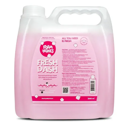 Foam Heroes Fresh Dash - квик-детейлер для интерьера без спирта, матовый эффект, 3 л