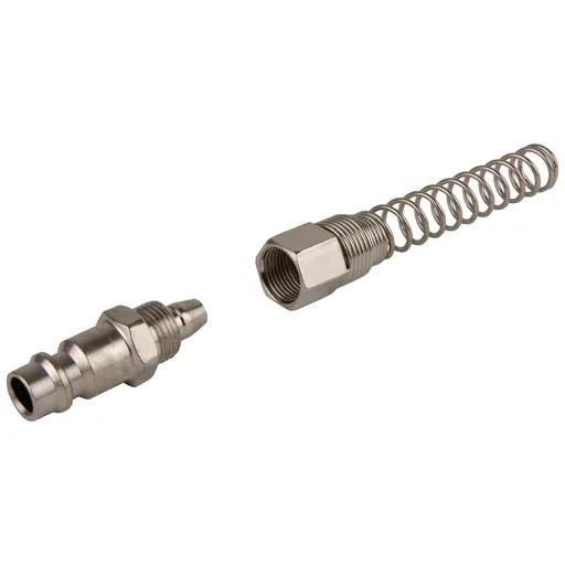Предназначен для присоединения к пневматическим шлангам через обжимное крепление. Пружина предотвращает перегибы шланга. Применяется совместно с быстросъемным соединением «мама».