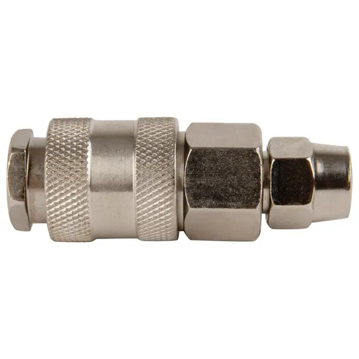 Стальной разъем «мама» быстросъемный с обжимным креплением под шланг 6,5*10 мм.