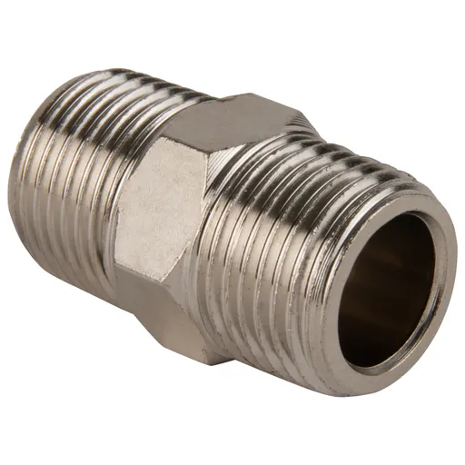 Стальной прямой переходник (соеденитель) с наружной резьбой 3/8"M - 3/8"M .