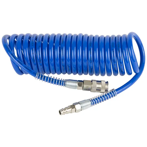 Шланг пневматический спиральный с брс 5 м, 6.5x10 мм Optimus OPT-7655 служит удлинителем между компрессором и рабочим инструментом. Отличается высокой прочностью и гибкостью.