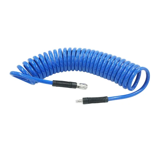 Пневматический спиральный шланг длиной 8 метров, с диаметром 10 мм внутренний и 14 мм внешний, оснащен быстроразъемными соединениями (БРС).
