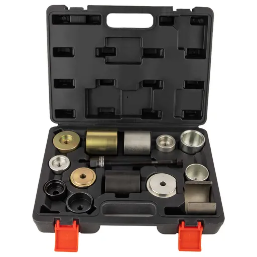 Съемник сайлентблоков WiederKraft WDK-214112 предназначен для профессионального обслуживания подвески автомобилей BMW. Специализированный инструмент обеспечивает точную выпрессовку и запрессовку сайлентблоков при ремонте ходовой части. Набор изготовлен из высоколегированной инструментальной стали, обеспечивающей прочность и долгий срок службы.