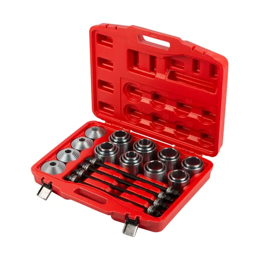Набор для снятия и установки сайлентблоков и подшипников ступиц WiederKraft WDK-214200 используется для выпрессовки и запрессовки сайлентблоков, для монтажа и демонтажа подшипников, втулок, сайлентблоков, а также подшипников с резиновой втулкой. Изделия изготовлены из высокопрочной стали. Поставляется набор в удобном переносном кейсе, который облегчает хранение и транспортировку.