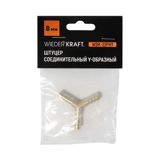WDK-23PHY Штуцер соединительный Y-образный "ёлочка" для шлангов 8 мм, латунь