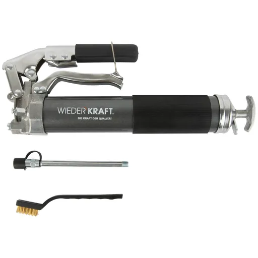 Шприц рычажно-плунжерный WIEDERKRAFT WDK-65159 предназначен для нагнетания консистентных смазок при проведении технического обслуживания, ремонта и профилактики. Подходит для использования в мастерских, на СТО и в условиях интенсивной эксплуатации.