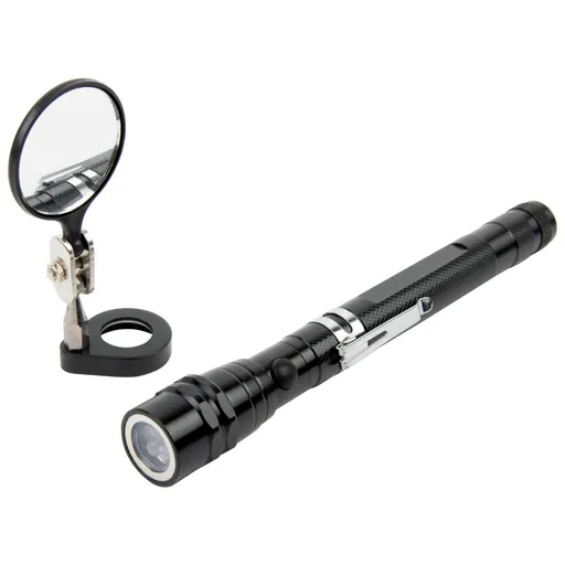Фонарик на гибкой рукоятке с зеркалом WDK-65453 предназначен для освещения труднодоступных мест. Компактное изделие в сложенном состоянии, при необходимости, легко увеличивается в размерах благодаря телескопической ручке.