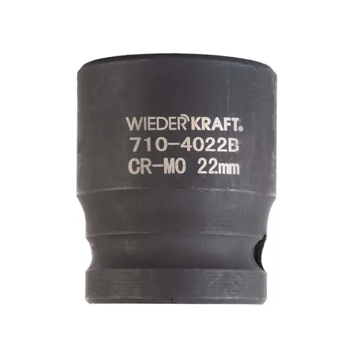 Головка торцевая ударная 6-гранная (22 мм; 1/2DR) WiederKraft WDK-710-4022 применяется при проведении слесарных работ для демонтажа/монтажа резьбовых соединений с помощью инструмента ударного действия (пневматические и электрические гайковерты). Изготовлена из стали 42Cr-Mo, устойчива к динамическим нагрузкам и обладает повышенными прочностными характеристиками.