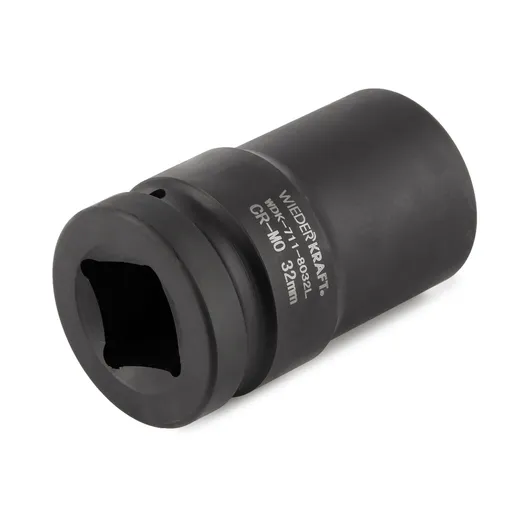 Головка торцевая ударная глубокая 6-гранная (32 мм; 1") WiederKraft WDK-711-8032L применяется при проведении слесарных работ для демонтажа/монтажа резьбовых соединений с помощью инструмента ударного действия (пневматические и электрические гайковерты).
