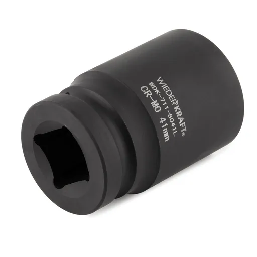 Головка торцевая ударная глубокая 6-гранная (41 мм; 1") WiederKraft WDK-711-8041L применяется при проведении слесарных работ для демонтажа/монтажа резьбовых соединений с помощью инструмента ударного действия (пневматические и электрические гайковерты).