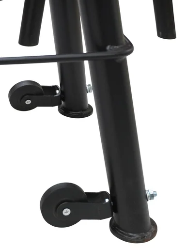 Модель оснащена транспортировочными колёсами, что облегчает перемещение стойки по рабочей зоне автосервиса. Это особенно удобно при работе с тяжёлой техникой и при частом использовании оборудования.