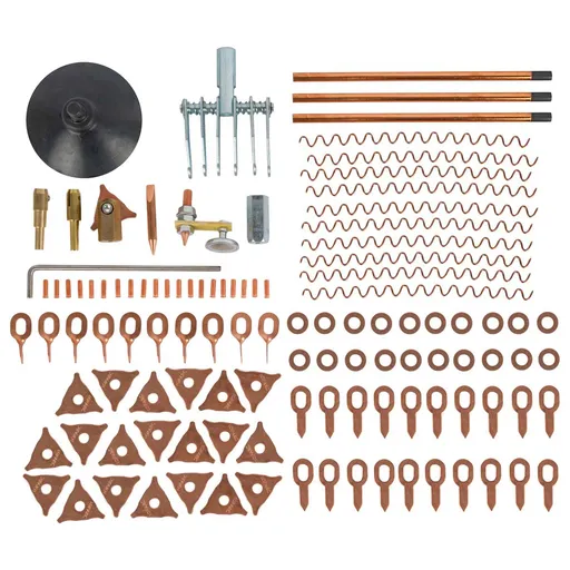 WDK-BOX67 набор аксессуаров для споттера — незаменимый комплект включающий в себя все необходимые для кузовного ремонта и восстановления автомобилей: адаптеры, шайбы и прочие аксессуары. Омедненные шайбы позволяют эффективнее и чище проводить сварочные работы, а также способствуют более долгому хранению расходников. Удобно упакован в прочный пластиковый кейс, обеспечивающий надёжное хранение и транспортировку всех элементов набора.