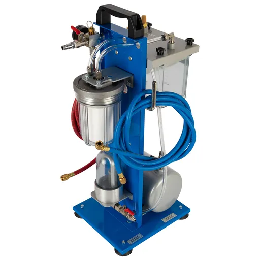 Установка для очистки системы кондиционирования активно применяется в автосервисах при сезонном или профилактическом техническом обслуживании транспортных средств. Использование такого оборудования способствует стабильной и долгосрочной эксплуатации всей системы охлаждения автомобиля. Устройство представляет собой пневматическую систему, оснащенную многоступенчатой фильтрацией, включающей как стандартные фильтрующие элементы, так и дополнительный сетчатый фильтр для тонкой очистки.