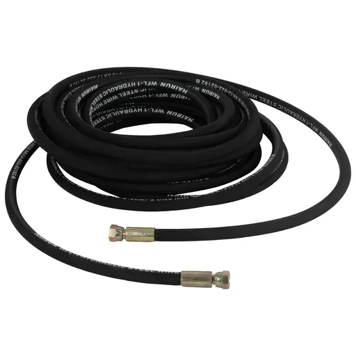 Шланг высокого давления WIEDERKRAFT WDK-GH1415 обеспечивает гибкую и прочную связь между гидравлическими насосами и оборудованием, требующим гидравлической энергии. Гидравлический шланг представляет собой гибкий резиновый трубопровод с армированной оплеткой и фитингами 1/4" на концах и применяется для подачи жидкостей, эмульсий, масел, газов.