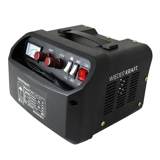 Пуско-зарядное устройство 12/24V 300А WDK-Start300 - удобный прибор, позволяющий быстро зарядить аккумулятор или запустить технику. Благодаря паянным контактам и медному трансформатору, пуско-зарядное устройство отличается высокой надежностью. Мощность тока достаточна для работы с легковыми автомобилями, мотоциклами и лодками.