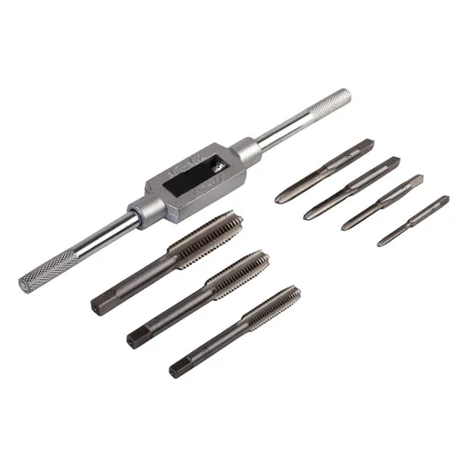 Универсальный профессиональный комплект для нарезания внутренней метрической резьбы с правым направлением. Предназначен для работы с металлами средней твёрдости, включая углеродистые и легированные стали, чугун, алюминий и латунь. Все режущие инструменты изготовлены из инструментальной легированной стали 9ХС — обеспечивают высокую износостойкость, прочность и точное формирование профиля резьбы.